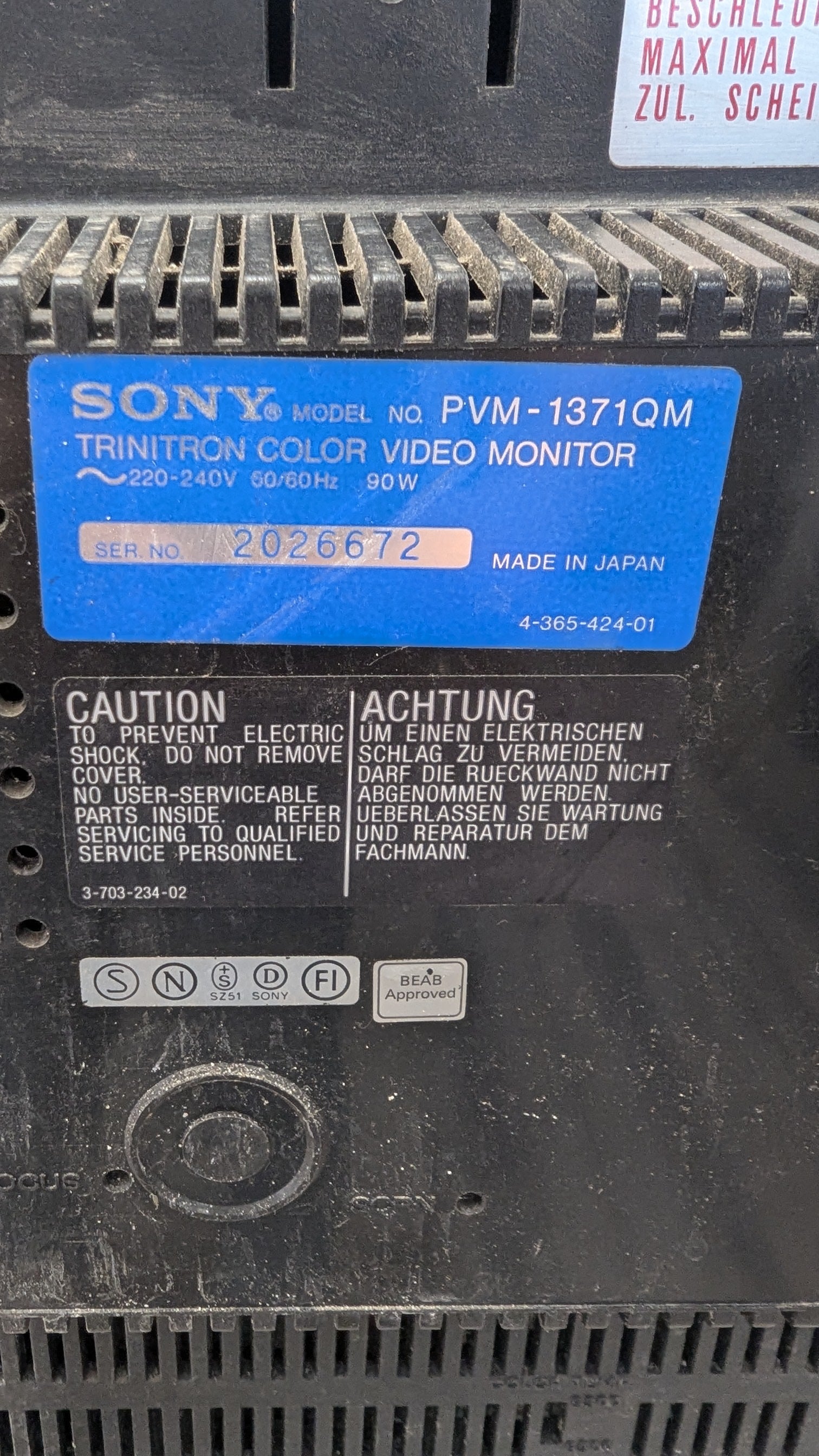 Moniteur SONY PMV-1371QM